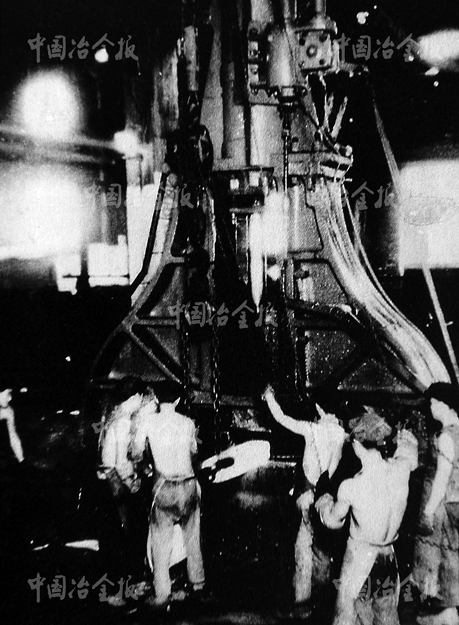 1945年8月27日,蘇聯(lián)紅軍接管日本進和商會和大華礦業(yè)株式會社。1947年7月1日,蘇聯(lián)紅軍把這些企業(yè)移交中國共產(chǎn)黨東北軍工部管理。進和商會更名為大連金屬制造工廠,大華礦業(yè)株式會社更名為大連煉鋼工廠。1948年10月31日,大連金屬制造工廠與大連煉鋼工廠合并,更名為大連鋼鐵工廠(東北特鋼的前身)。從1947年3月至1951年1月,大連鋼鐵工廠共冶煉了28736噸鋼、鍛造出生產(chǎn)炮彈頭用的圓坯4128噸、軋制出生產(chǎn)炮彈頭用的圓鋼6172噸、直接生產(chǎn)了部分炮彈頭和“九二步兵炮”彈簧等重要軍工產(chǎn)品,為解放戰(zhàn)爭做出重要貢獻。圖為1947年7月該廠鍛鋼生產(chǎn)場景。(汪洋 供圖)
