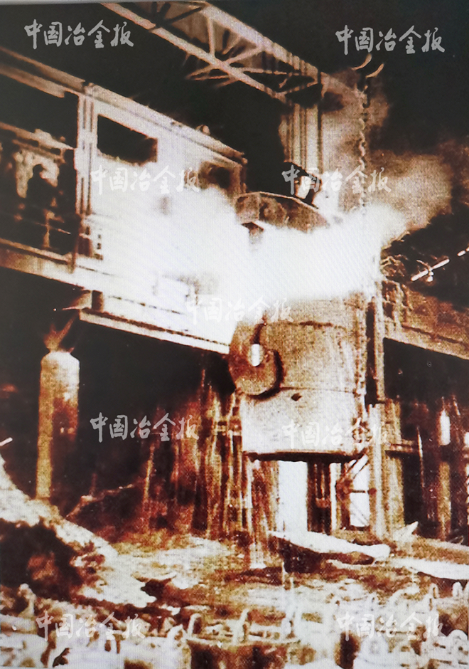 1949年4月20日,西北煉鋼廠(太鋼前身)獲得解放,在中國共產(chǎn)黨的領(lǐng)導(dǎo)下,西北煉鋼廠生產(chǎn)恢復(fù)工作全面展開,僅用一個月就恢復(fù)生產(chǎn)。1949年8月西北煉鋼廠改組為西北鋼鐵公司,1950年4月更名為太原鋼鐵廠。1952年4月太鋼開始生產(chǎn)特殊鋼和優(yōu)質(zhì)鋼。圖為1949年解放后第一爐平爐出鋼的情景。(特約通訊員 王旭宏 通訊員 豐曜宇 供圖)