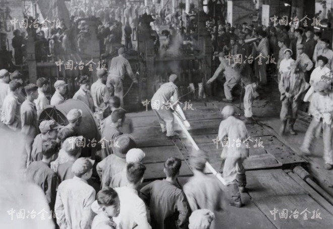 新中國成立后第一根鋼軌成功軋制現(xiàn)場。