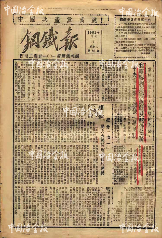 西南工業(yè)部一零一廠《鋼鐵報》。
