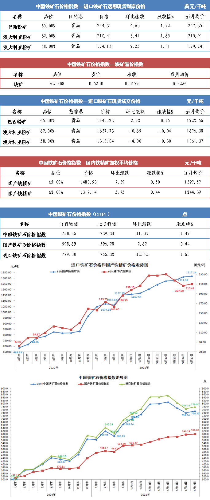 【行業(yè)指數(shù)】5月17日中國鐵礦石價(jià)格指數(shù)