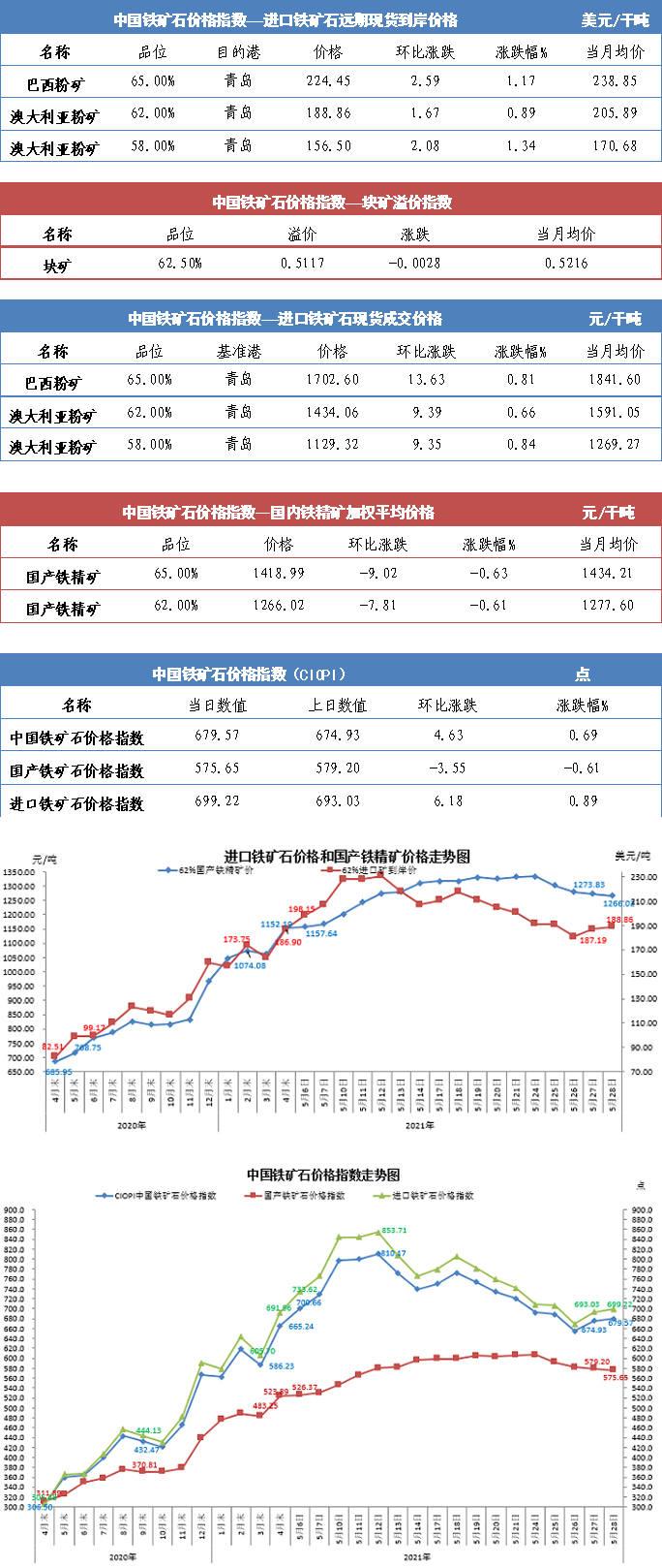 【行業指數】5月28日中國鐵礦石價格指數