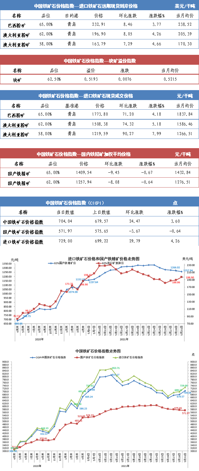 【行業(yè)指數(shù)】5月31日中國鐵礦石價格指數(shù)