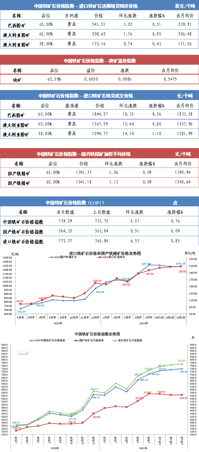 【行業(yè)指數(shù)】6月3日中國鐵礦石價(jià)格指數(shù)