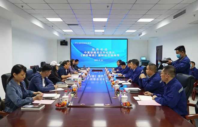 5月16日,中宣部建黨百年重磅紀錄片《鋼鐵脊梁》攝制項目組一行到河北普陽鋼鐵有限公司(以下簡稱“普陽鋼鐵”)進行前采。