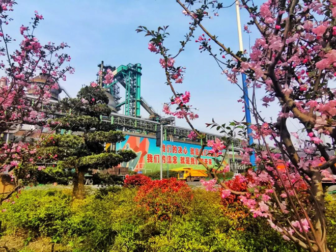 植綠護綠,刷新顏值。沙鋼立足8公里長江綠廊風景線輻射全域打造 花園式工廠,高水平設計、多樹種搭配開展綠化美化,打造出“春有花、夏有蔭、秋有果、冬有綠” 的優美廠區環境。