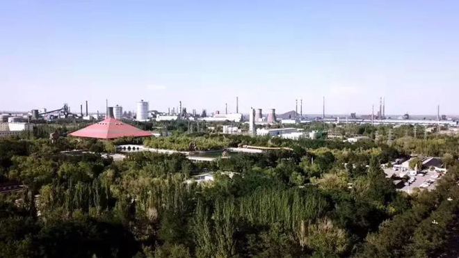站在雨后的酒鋼廠區(qū),遠處是清晰可見的皚皚雪山,眼前是澄凈無云的蔚藍天空,成片的鮮花隨風搖曳,白鷺在湖面恬靜棲息,不遠處高聳的煙囪沒有一絲青煙,巨大的冷卻塔成為了“酒鋼藍”的背景。