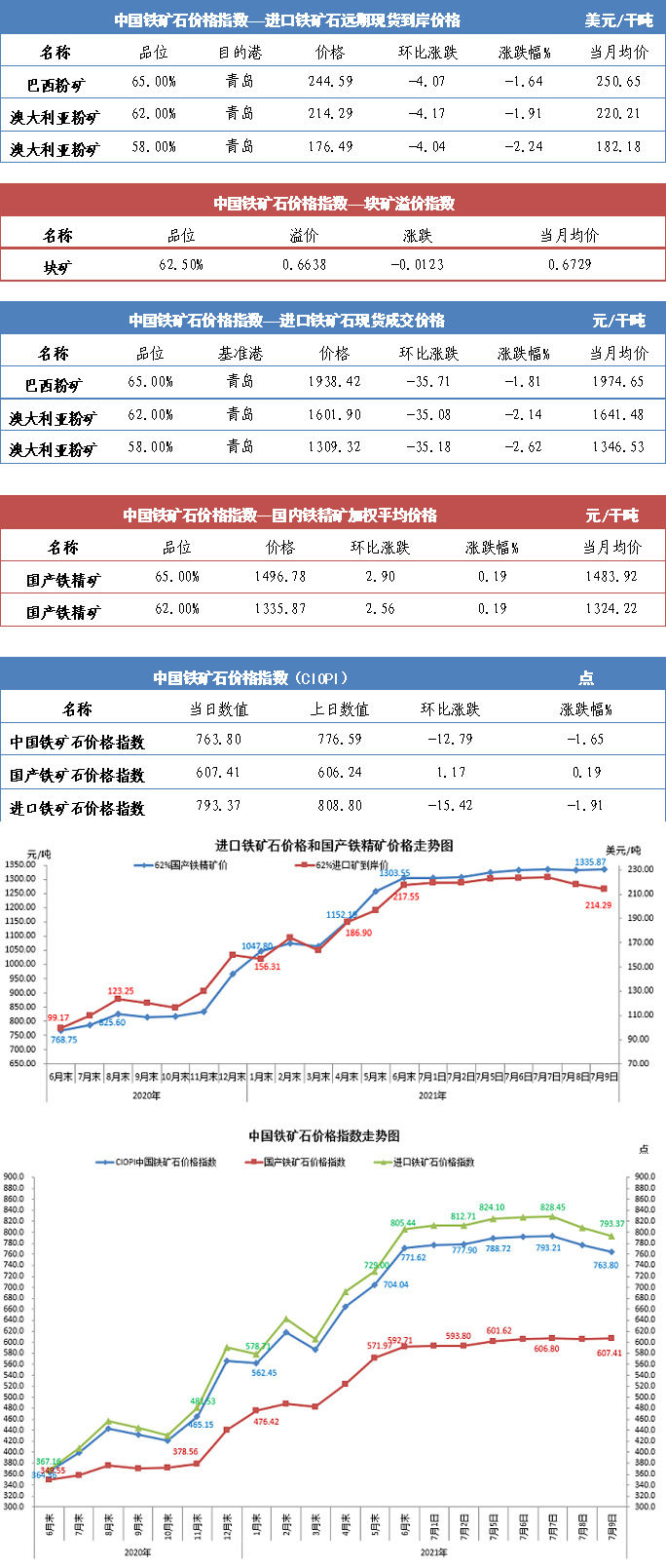 【行業(yè)指數(shù)】7月9日中國(guó)鐵礦石價(jià)格指數(shù)