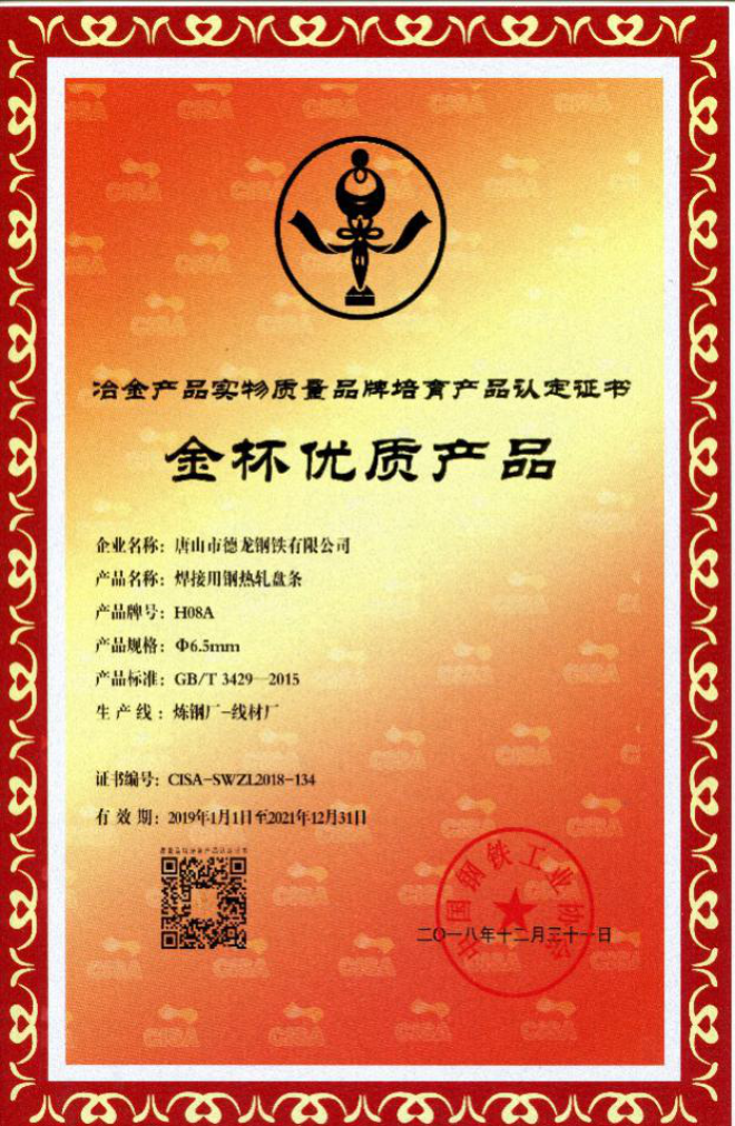 現(xiàn)在,唐山德龍已經(jīng)獲專(zhuān)利授權(quán)78項(xiàng),其中發(fā)明專(zhuān)利24項(xiàng),實(shí)用新型專(zhuān)利54項(xiàng);擁有省、市、國(guó)家優(yōu)秀質(zhì)量管理成果60余項(xiàng),市級(jí)優(yōu)秀技術(shù)創(chuàng)新成果一等獎(jiǎng)2項(xiàng)、二等獎(jiǎng)2項(xiàng)、三等獎(jiǎng)3項(xiàng),省工信廳認(rèn)定新產(chǎn)品2項(xiàng),省重點(diǎn)研發(fā)項(xiàng)目1項(xiàng),省冶金科學(xué)技術(shù)二等獎(jiǎng)2項(xiàng)、三等獎(jiǎng)4項(xiàng),卓越產(chǎn)品認(rèn)證2項(xiàng),金杯產(chǎn)品認(rèn)證4項(xiàng)(H08A、H08E、H10Mn2、ER70S-6)。多項(xiàng)技術(shù)達(dá)到國(guó)際先進(jìn)、國(guó)內(nèi)領(lǐng)先水平。公司被評(píng)為國(guó)家高新技術(shù)企業(yè)、河北省技術(shù)創(chuàng)新示范企業(yè)、河北省創(chuàng)新引領(lǐng)型領(lǐng)軍企業(yè)。