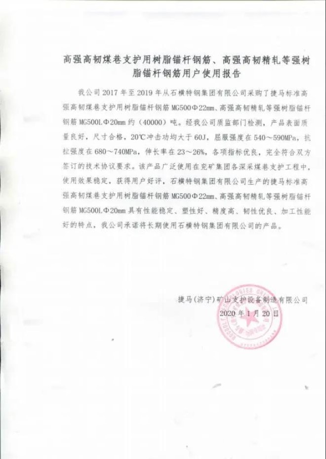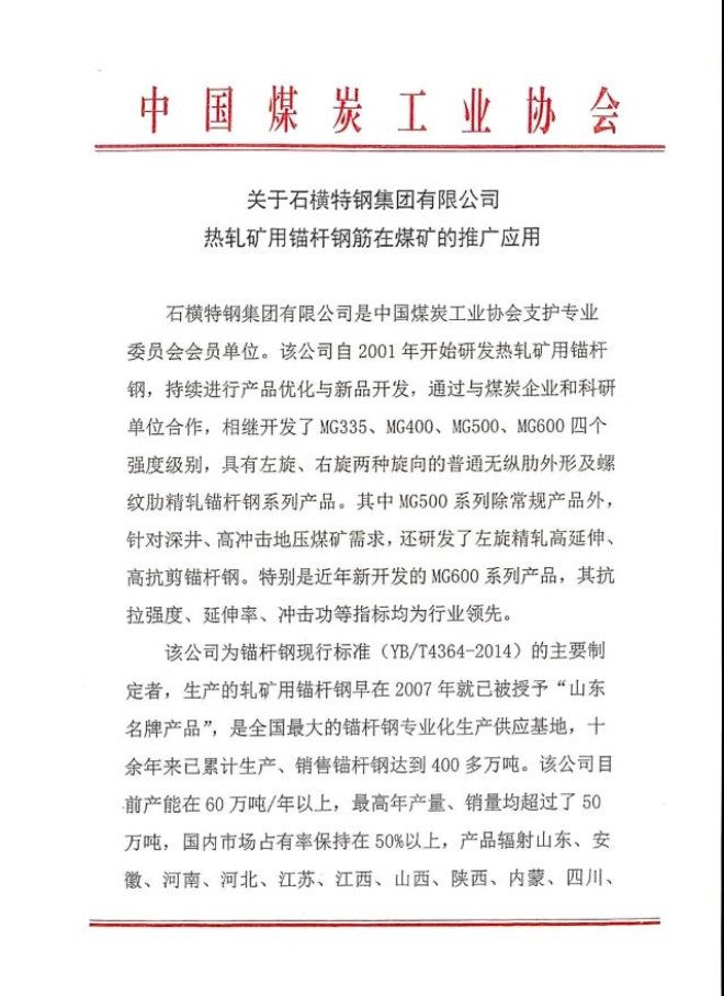 這些僅僅是中國500強企業——石橫特鋼生產的“石特牌”錨桿鋼所創造的驕人業績的幾個縮影。