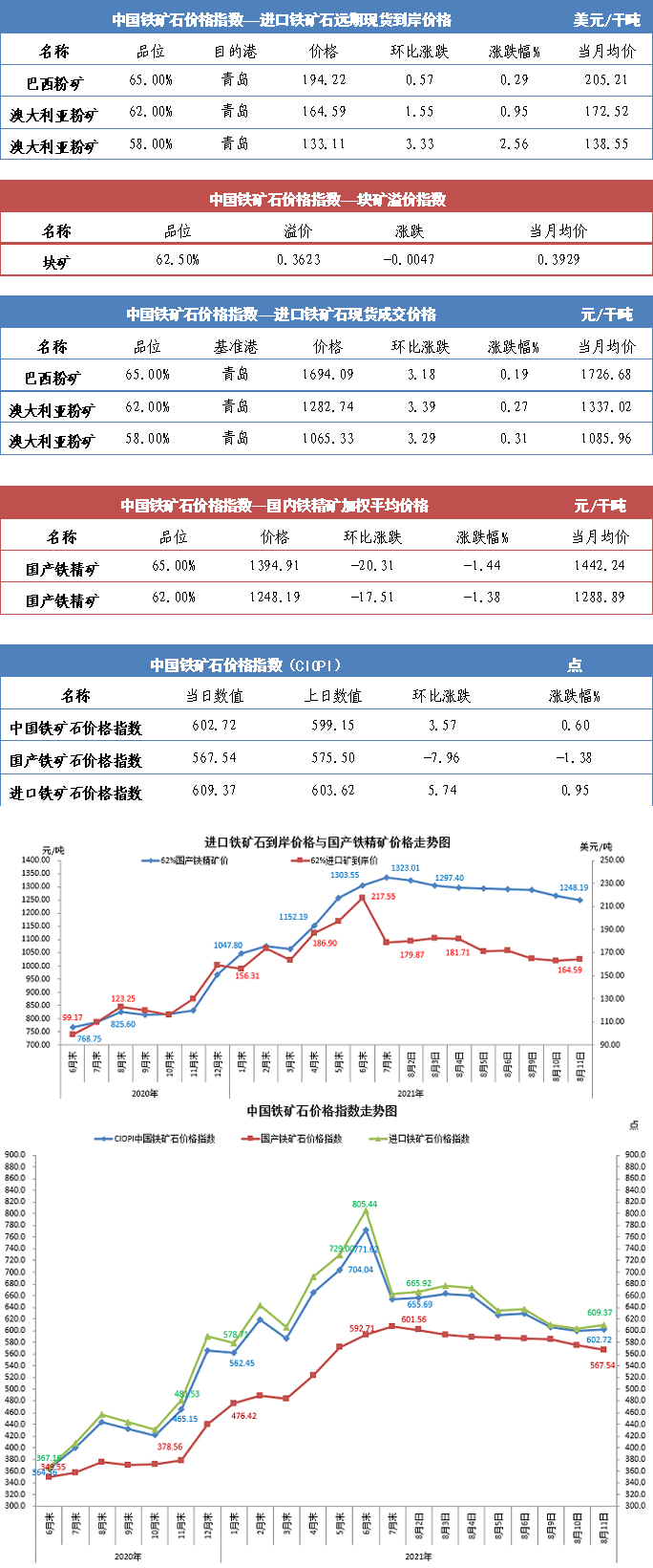 【行業(yè)指數(shù)】8月11日中國(guó)鐵礦石價(jià)格指數(shù)