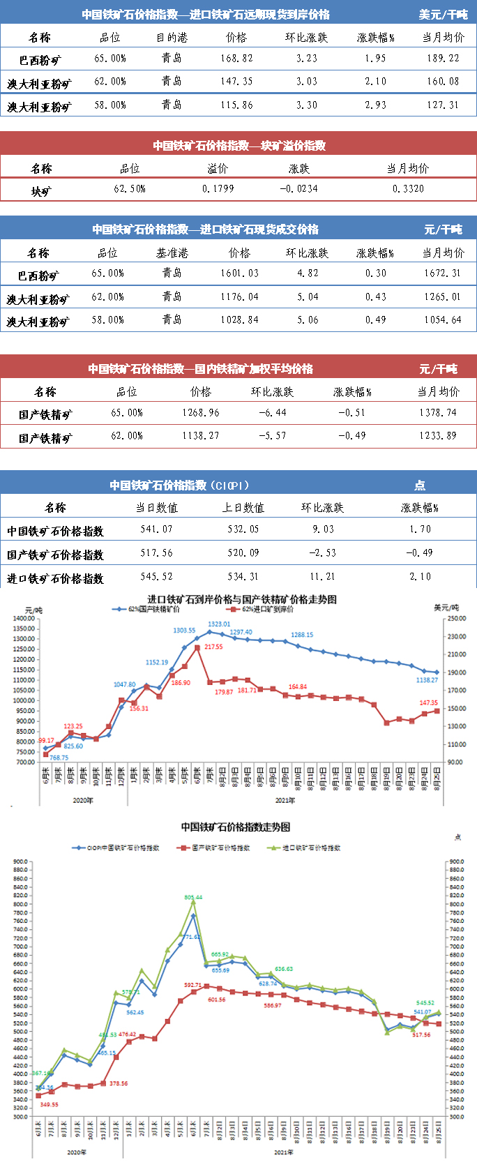 【行業(yè)指數(shù)】8月25日中國(guó)鐵礦石價(jià)格指數(shù)