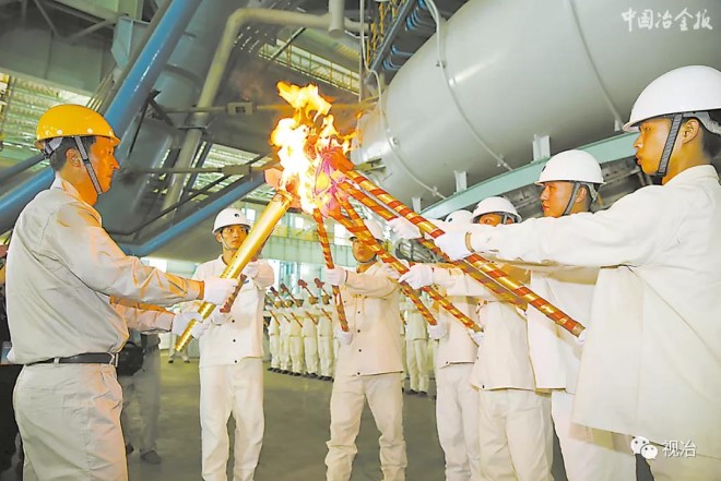 2016年7月15日上午10時,寶鋼湛江鋼鐵2號高爐點火成功(如圖)。這標志著湛江鋼鐵一期工程全面建成,生產經營進入一個全新階段。(王建國 攝)