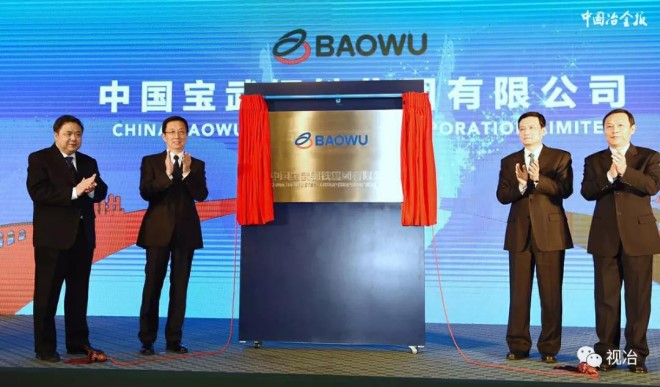 2016年12月1日,韓正、肖亞慶等領(lǐng)導(dǎo)為中國寶武鋼鐵集團(tuán)有限公司銘牌揭幕。(劉杰 攝)