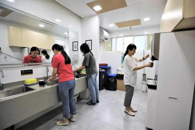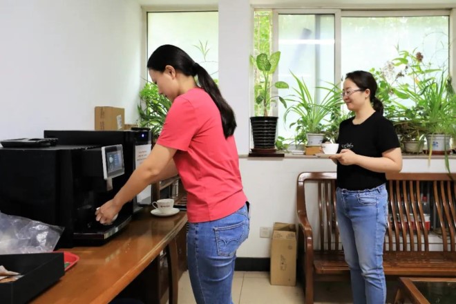 為創造美好溫馨的工作環境,報社重新裝修了水房和衛生間,并在休息室配備了咖啡機,供員工茶歇時使用。水房改造后,給我的第一印象是干凈、明亮。使用之后,發現不僅“硬件”提升了,而且“軟件”配套也是杠杠的。首先,洗手液不再是按壓式而是感應式,避免了大家互相接觸洗手瓶,滿足了防疫需要。同時,在水池旁邊配備了手紙,洗完手就可以把手擦干。其次,智能飲水機滿足了大家不同的需求,不管是喜歡喝熱水還是喜歡喝溫水,一臺飲水機都能解決,且飲水機加裝了5層過濾系統,讓大家喝上了純凈水,身心健康。服務也是十分貼心,衛生間、水房的手紙、洗手液更換得十分及時。咖啡機的加裝,一下讓人感覺到眼前一亮。畢竟以前,只聽說在IT行業咖啡免費喝,如今在報社也可以咖啡、牛奶無限暢飲啦!此外,報社還對休息室空間進行合理布局,將空閑的房間騰出來便于接待客戶。報社黨委這些暖心、有溫度之舉,增強了員工的幸福感、獲得感和歸屬感,更加激發了員工干事的熱情。