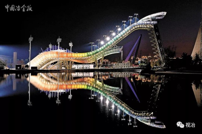 在2022年北京冬奧會場館建設中,太鋼不銹鋼管、不銹螺紋鋼筋、L型和C型不銹鋼板等3類產品,參與了國家速滑館的建設。作為北京冬奧會北京賽區首個建成的新比賽場館,首鋼滑雪大跳臺是冬奧歷史上首個永久保留和使用的同類比賽場地。上圖為2020年10月15日,工程建設者們正在國家速滑館內地面鋪設太鋼不銹鋼新產品。(王旭宏攝)下圖為首鋼滑雪大跳臺夜景。( 孫力 攝)