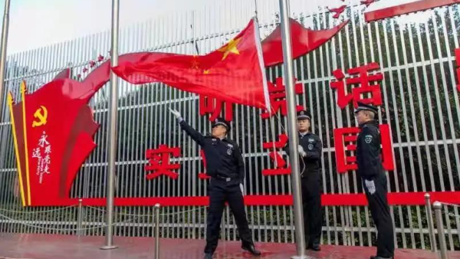 伴隨著催人奮進(jìn)的《義勇軍進(jìn)行曲》,方大九鋼全體干部員工肅立,行注目禮,鮮艷的五星紅旗伴隨著國(guó)歌冉冉上升?,F(xiàn)場(chǎng)人員目不轉(zhuǎn)睛望著國(guó)旗,目光堅(jiān)定,心中在祝愿我們偉大的祖國(guó)在中國(guó)共產(chǎn)黨領(lǐng)導(dǎo)下更加繁榮昌盛、國(guó)泰民安。國(guó)旗在藍(lán)天白云之下,猶如一團(tuán)火焰,映紅了大地。