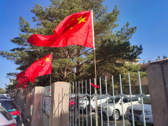身不能至,心向往之。在首都北京之外的鋼鐵人們,也用莊重的儀式升起我們的國(guó)旗,表達(dá)對(duì)祖國(guó)母親的熱愛,堅(jiān)定對(duì)鋼鐵強(qiáng)國(guó)的決心!一面面鮮艷的五星紅旗為國(guó)慶節(jié)增添了濃濃的喜慶氣氛,形成一道道亮麗風(fēng)景線。
