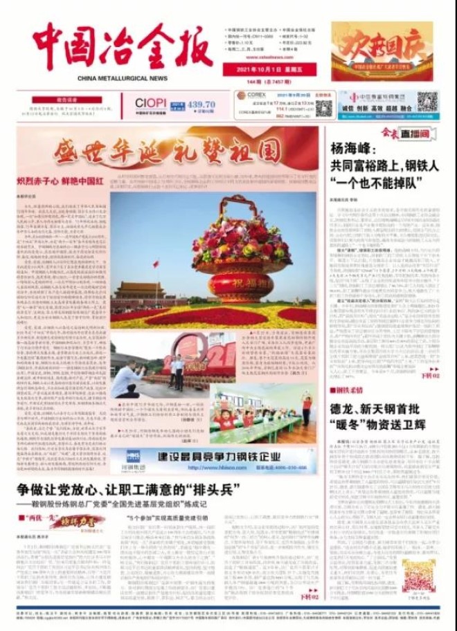 愛黨、愛國,讓鋼鐵人以奮進之姿揚帆光明新征程。2021年是“十四五”開局之年,面對國內外經貿關系存在諸多不確定性、新冠肺炎疫情防控形勢不容樂觀、大宗商品價格一路高漲等新形勢,中國鋼鐵御風而行、多管齊下,確保了行業運行穩中有進。鋼鐵行業緊密圍繞“聚焦一個根本任務,堅持兩大發展主題,著重解決行業三大痛點,推進一個發展進程”展現新作為,成績可圈可點:面對碳達峰、碳中和的戰略目標,鋼鐵行業成立低碳工作推進委員會,發布《鋼鐵擔當,開啟低碳新征程——推進鋼鐵行業低碳行動倡議書》,中國寶武、鞍鋼、河鋼、包鋼、中信特鋼等鋼企率先提出碳達峰、碳中和時間表、路線圖;面對產能、產量“雙控”的剛性約束,鋼鐵工業以更高的站位落實國家政策,以新發展理念引領觀念轉變,不打折扣地落實國家限產政策、進出口調整政策,產量壓減效果明顯,推動市場供需、進出口格局發生深層次變革;面對促產業集中的行業痛點,諸多鋼企闊步前行,中國寶武重組繼續大手筆布局、鞍鋼重組本鋼正式啟航,更多重組正在醞釀。