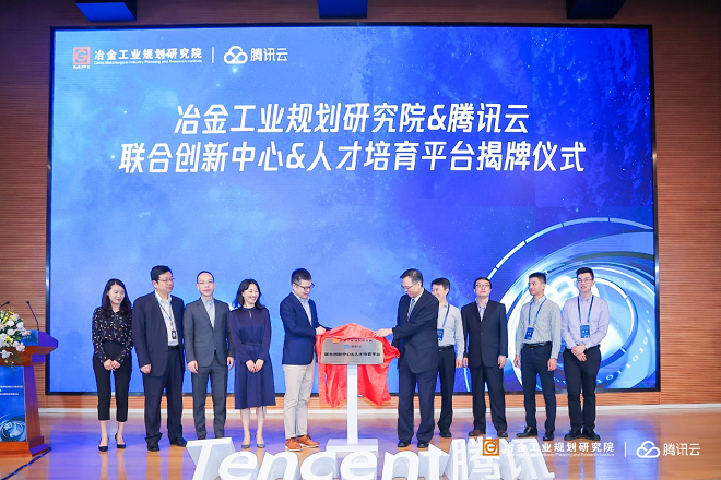 會上,冶金工業規劃研究院黨委書記、總工程師、俄羅斯自然科學院外籍院士李新創和騰訊公司副總裁、騰訊智慧工業和服務業總裁李強分別代表雙方就成立聯合創新中心和人才培育平臺進行了簽約,二人共同為其揭牌。