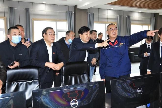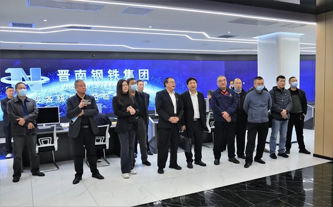圖為技術調研組領導專家在晉南鋼鐵智能管控中心參觀