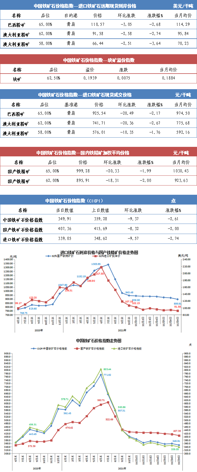 【行業(yè)指數(shù)】11月9日中國鐵礦石價格指數(shù)