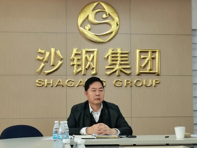圖為龔盛通過遠程視頻連線發言。(沙鋼集團 供圖)