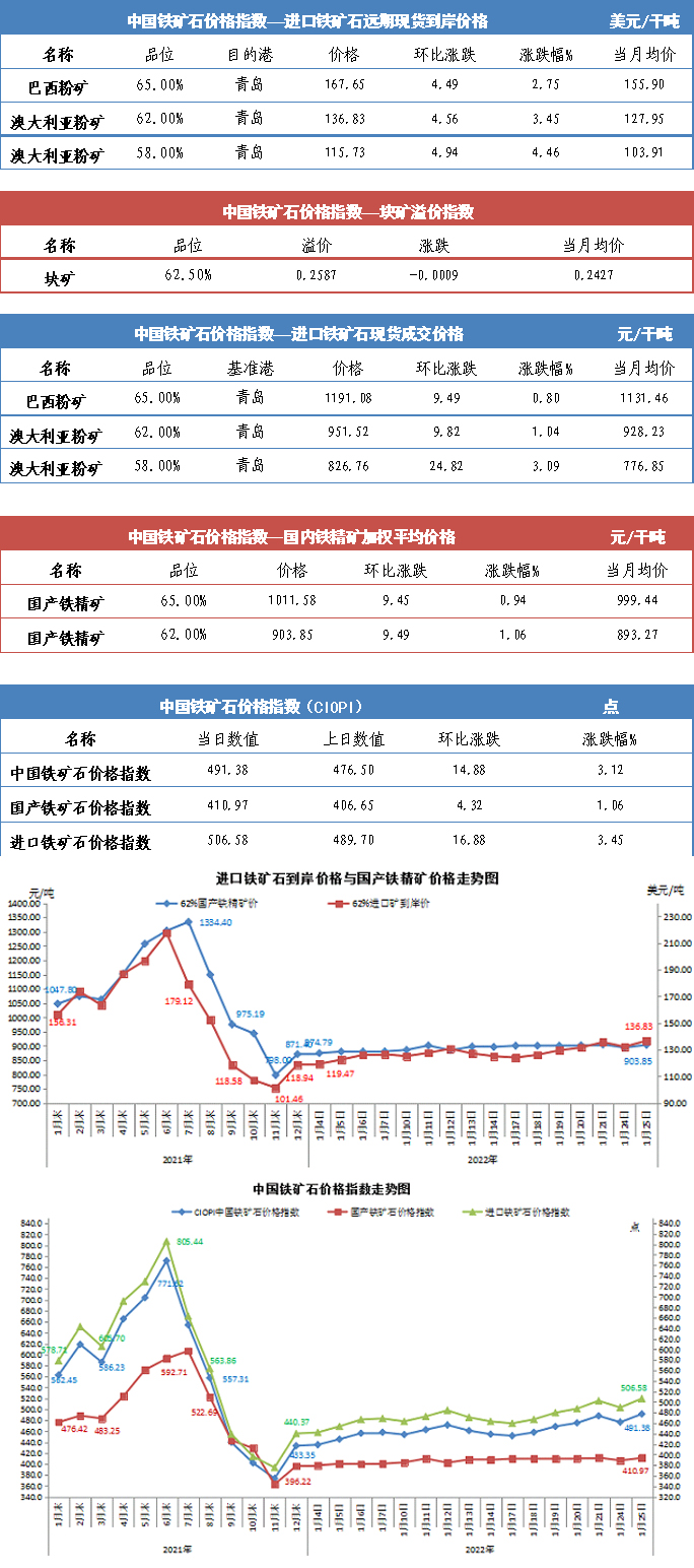 【行業(yè)指數(shù)】1月25日中國(guó)鐵礦石價(jià)格指數(shù)