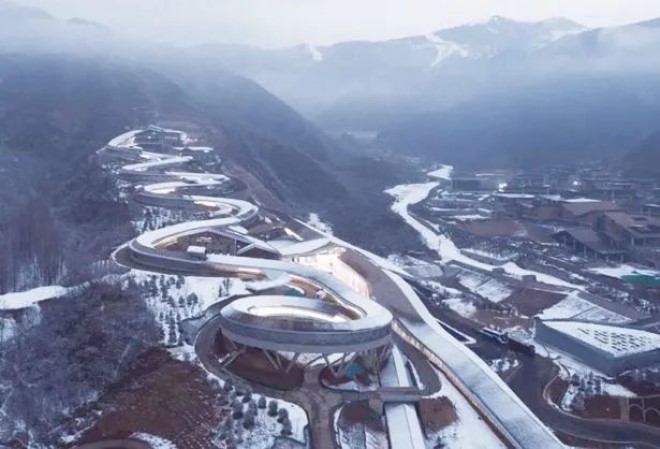 國家雪車雪橇中心又稱為“雪游龍”,是我國第一條、也是唯一一條符合冬奧會標準的雪車雪橇賽道,將作為北京冬奧會雪車、雪橇、鋼架雪車項目的比賽場地。國家雪車雪橇中心用地面積達18.69公頃,建筑面積達5.25萬平方米,構(gòu)筑物面積達2.15萬平方米,場內(nèi)設(shè)施主要包括出發(fā)區(qū)、運營區(qū)、結(jié)束區(qū)和賽道等。