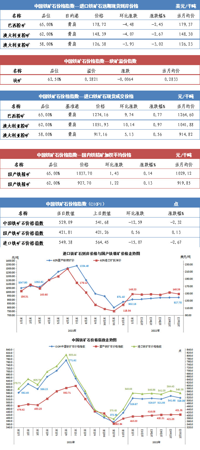 【行業(yè)指數(shù)】2月11日中國鐵礦石價(jià)格指數(shù)