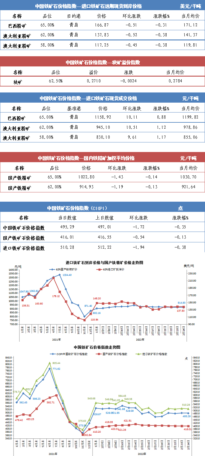 【行業指數】2月24日中國鐵礦石價格指數