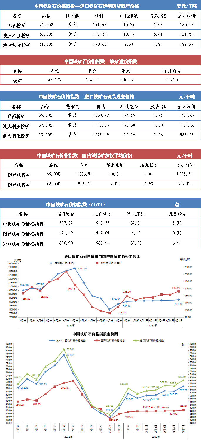 【行業(yè)指數(shù)】3月7日中國(guó)鐵礦石價(jià)格指數(shù)