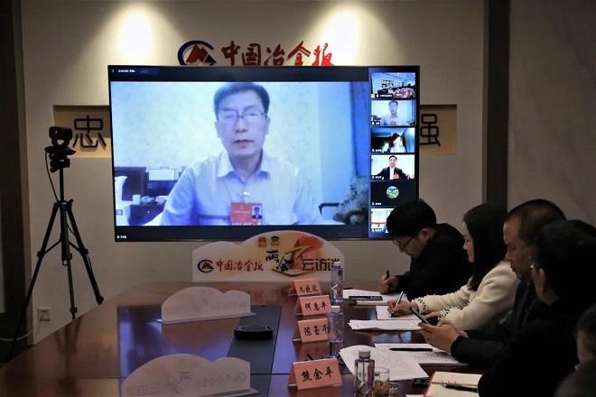 圖為李剛代表通過視頻連線接受采訪。