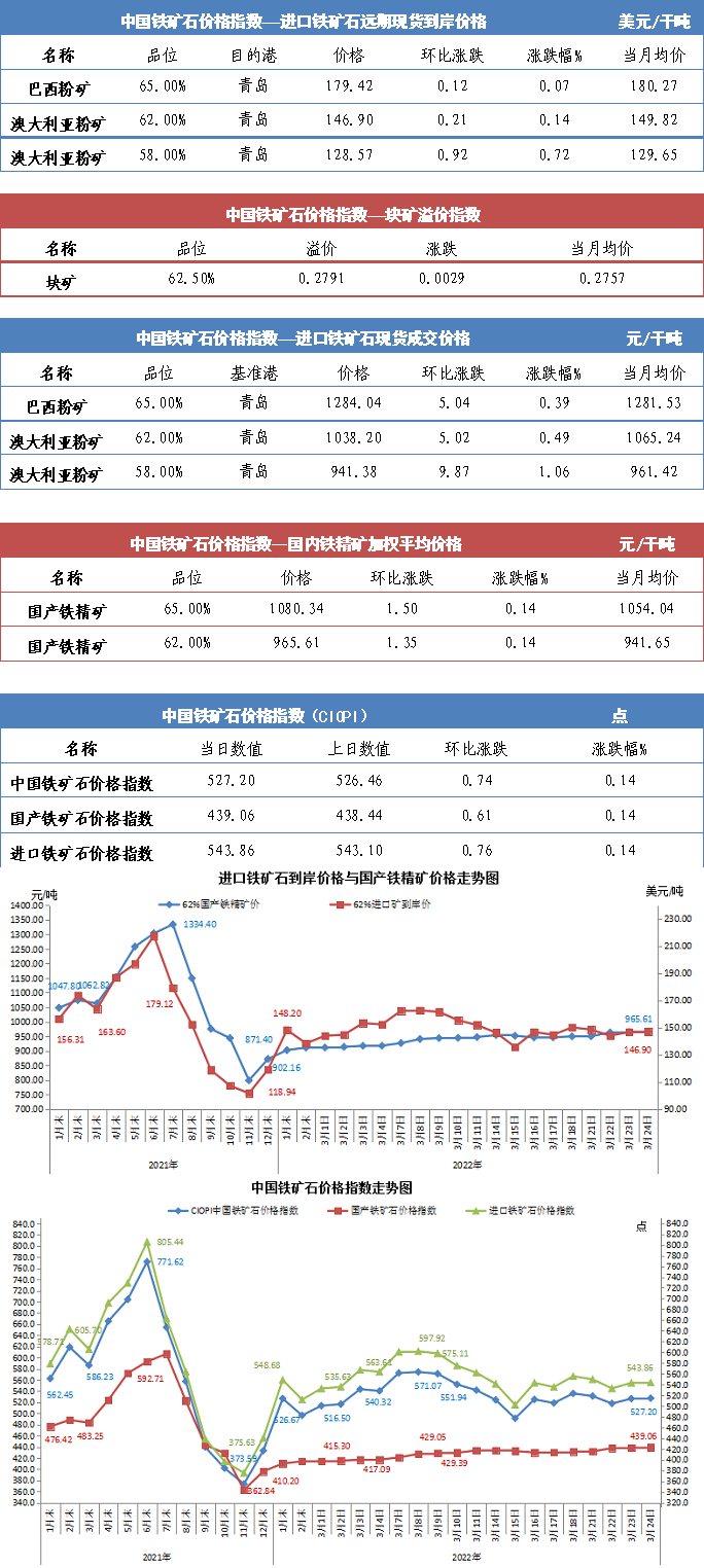 【行業(yè)指數(shù)】3月24日中國(guó)鐵礦石價(jià)格指數(shù)