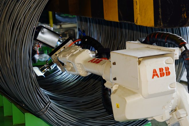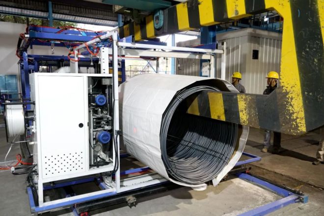韶鋼高端工業(yè)線材套袋機(jī),以自動(dòng)化手段,推動(dòng)3D(臟、累、險(xiǎn))崗位少人化、無人化,實(shí)現(xiàn)安全本質(zhì)化,制造清潔化。