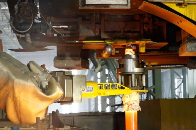 韶鋼連鑄大包自動(dòng)澆鋼項(xiàng)目,機(jī)器人替代員工完成大包滑板油缸、長水口裝拆、燒氧引流、中包測溫取樣、添加保溫覆蓋劑等操作。