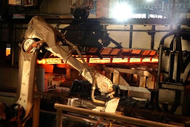 加大3D崗位機(jī)器人應(yīng)用。已實(shí)現(xiàn)煉鋼LF爐機(jī)械手自動(dòng)測溫取樣、連鑄大包自動(dòng)澆鋼、高一工序線卷機(jī)器人自動(dòng)焊標(biāo)、翻車機(jī)格網(wǎng)自動(dòng)清理、鋼結(jié)構(gòu)基地管道機(jī)械手智能焊接等項(xiàng)目。其中“LF爐機(jī)械手自動(dòng)測溫取樣”項(xiàng)目,以工業(yè)機(jī)器人替代人工測溫取樣,實(shí)現(xiàn)測溫取樣無人化,安全性、穩(wěn)定性、準(zhǔn)確性更高,冶煉過程更加高效、標(biāo)準(zhǔn)、可靠;“連鑄大包自動(dòng)澆鋼”項(xiàng)目,以機(jī)器人代替人工,完成大包滑板油缸裝拆、長水口裝拆,中間包測溫取樣、覆蓋劑分揀等操作,行業(yè)內(nèi)首次實(shí)現(xiàn)“大方坯連鑄自動(dòng)澆鋼”。