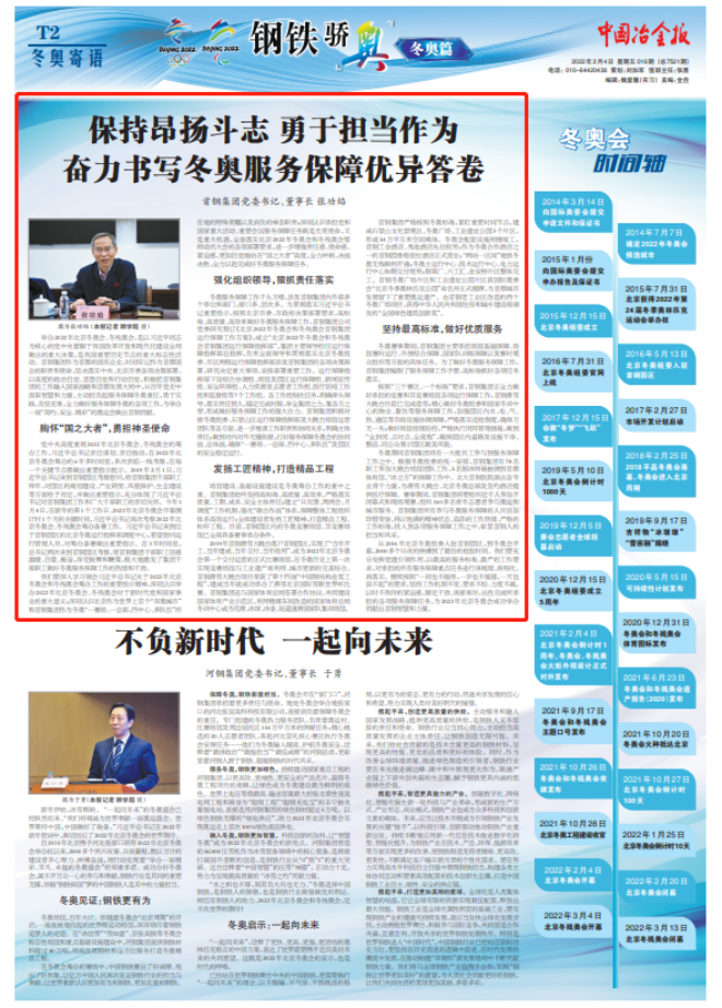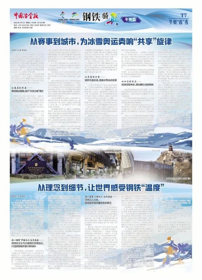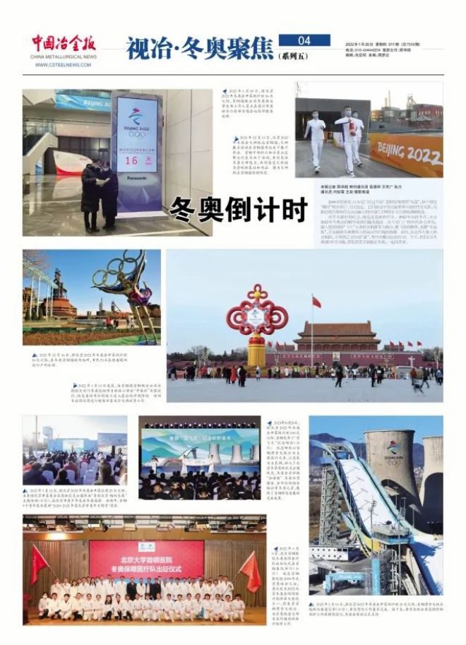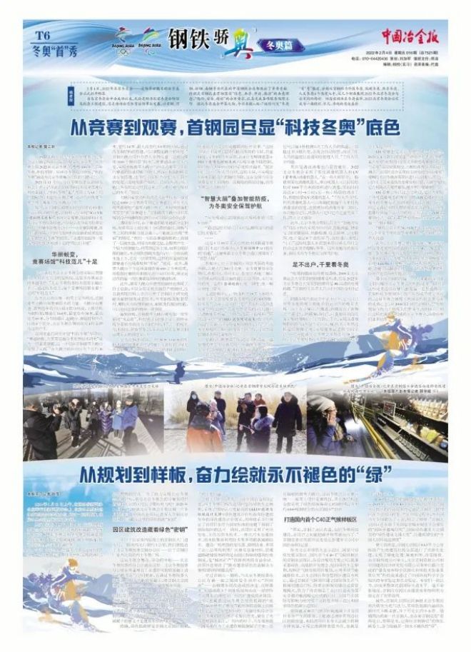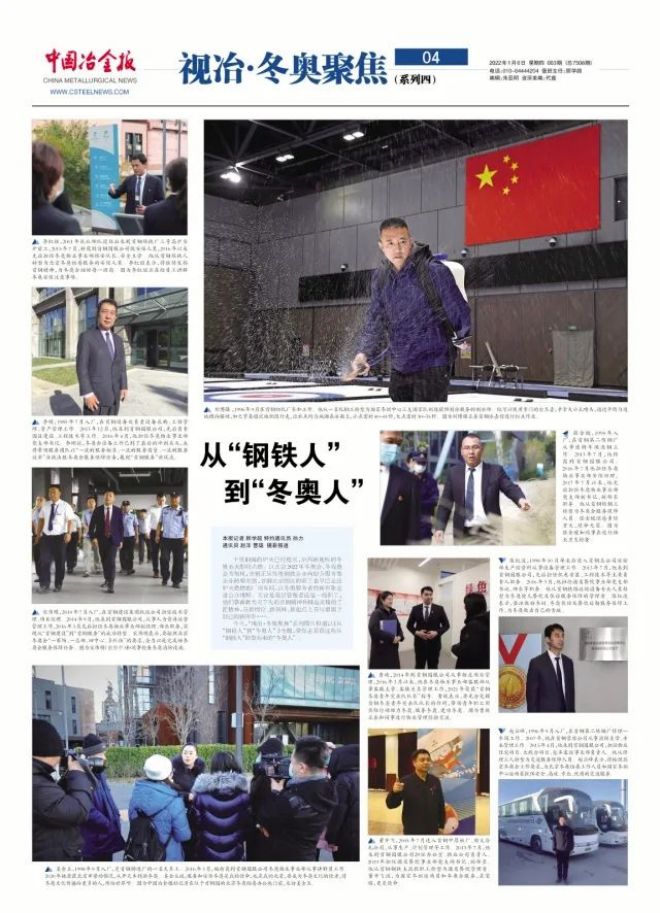 去年底,在首鋼服務(wù)保障冬奧進(jìn)入最緊張、最關(guān)鍵的時(shí)刻,何文波作出“首鋼為服務(wù)保障冬奧會(huì)做出了重大貢獻(xiàn),要組織專題報(bào)道,宣傳首鋼轉(zhuǎn)型、宣傳首鋼與冬奧會(huì)”的批示。為此,中國冶金報(bào)社迅速行動(dòng),去年12月10日,報(bào)社黨委書記、社長(zhǎng)陳玉千帶隊(duì)專程去首鋼調(diào)研,與首鋼集團(tuán)黨委書記、董事長(zhǎng)張功焰等領(lǐng)導(dǎo)圍繞首鋼轉(zhuǎn)型發(fā)展和服務(wù)保障冬奧等工作進(jìn)行深入座談交流。在之后近兩個(gè)月的時(shí)間里,中國冶金報(bào)社組成強(qiáng)大陣容,編輯記者全力以赴、連續(xù)奮戰(zhàn)、深入采寫,接連推出5篇“首鋼轉(zhuǎn)型高質(zhì)量發(fā)展”系列長(zhǎng)篇報(bào)道。冬奧會(huì)開幕當(dāng)天,中國冶金報(bào)又在《鋼鐵驕“奧”冬奧篇》專版中刊登了首鋼集團(tuán)黨委書記、董事長(zhǎng)張功焰《保持昂揚(yáng)斗志,勇于擔(dān)當(dāng)作為,奮力書寫冬奧服務(wù)保障的優(yōu)異答卷》的署名文章和首鋼服務(wù)保障冬奧4篇專題報(bào)道。