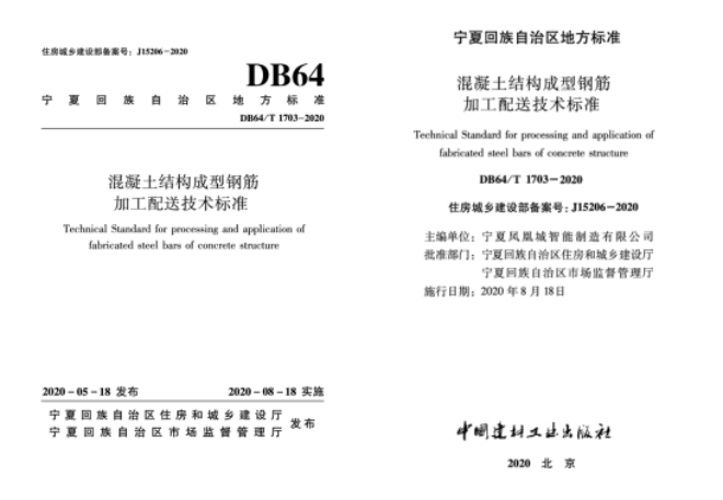 該公司作為主編單位,完成《混凝土結構成型鋼筋加工配送技術標準》DB64/T 1703-2020地方標準編制。該標準于2020年5月18日發布,8月18日實施。