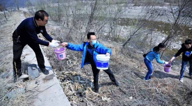 只剩最后一個環(huán)節(jié)——澆灌,然而,取水地距離較遠(yuǎn),水桶又少,來回打水澆灌效率太低了?!皝?,咱們排長龍,遞桶、取水、澆灌!”陳玉千一聲令下,大家立刻行動,排起了取水作業(yè)一條龍,從取水點直接延伸到了植樹點。這一下子就將“散兵游勇”聚成了“建制部隊”,保護(hù)100棵樹苗快速獲得了甘霖的滋養(yǎng)。