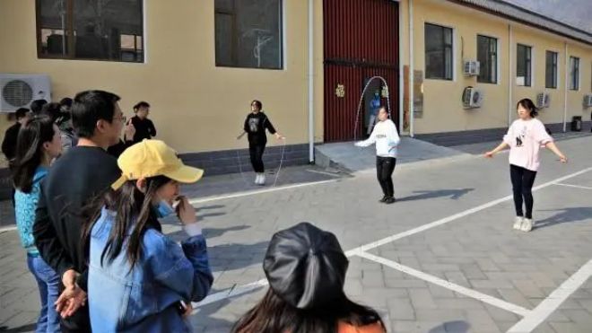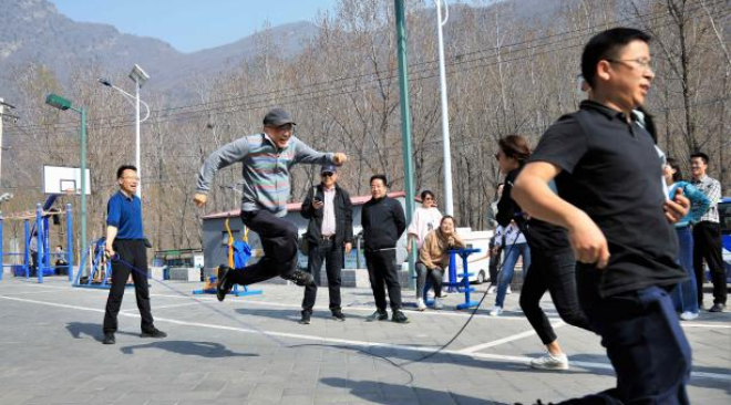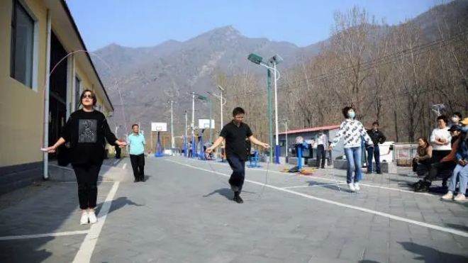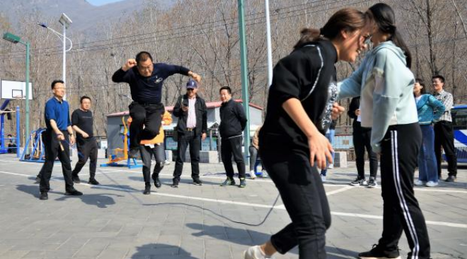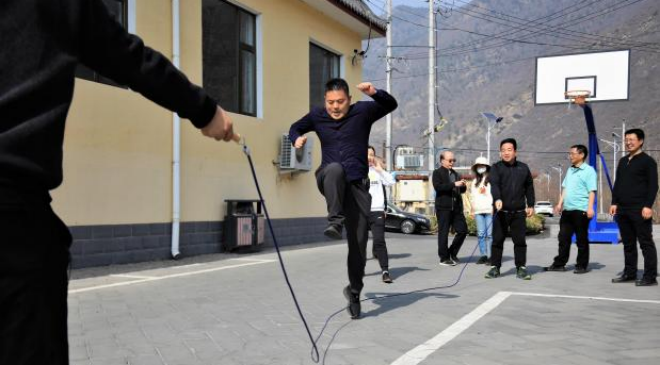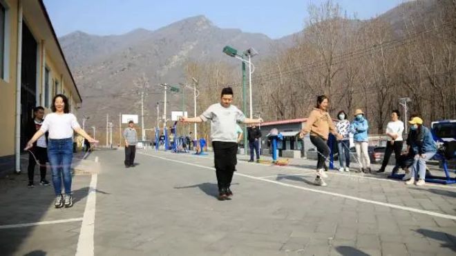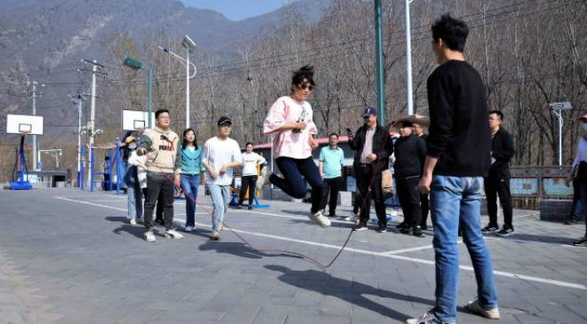 植樹凝聚了協(xié)作精神,勞動激活了身體力量,大家骨子里的拼搏沖勁就此喚醒,呼喊著,拉開了跳繩大賽的序幕。