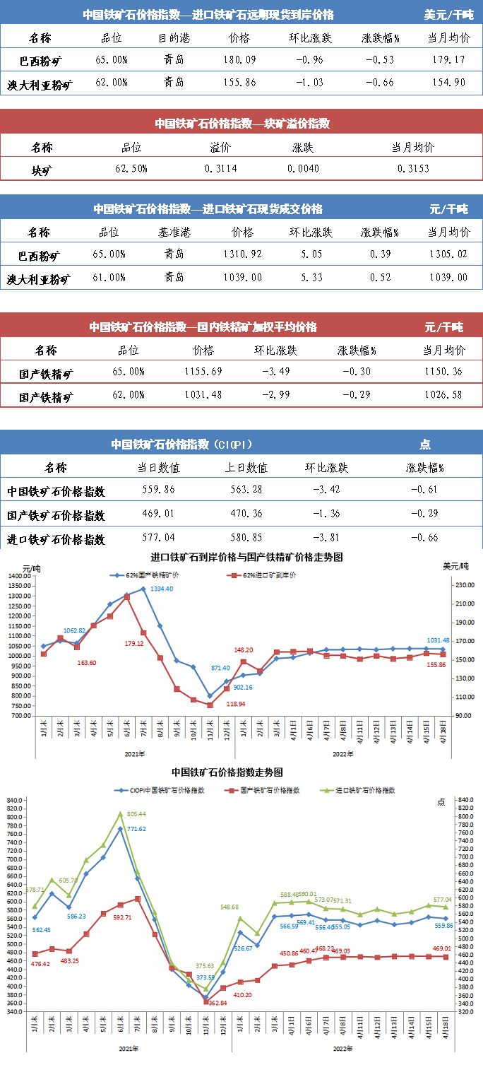 【行業指數】4月18日中國鐵礦石價格指數
