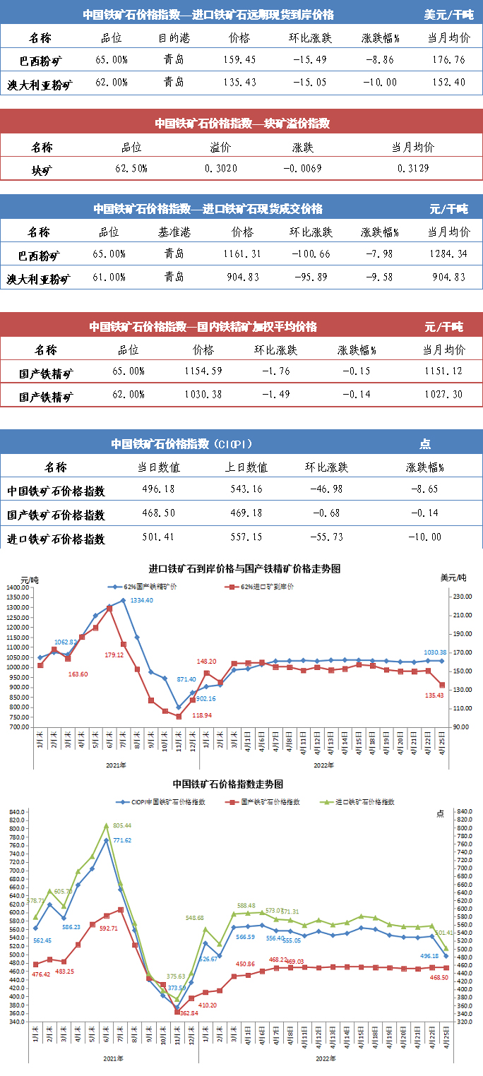 【行業(yè)指數(shù)】4月25日中國鐵礦石價格指數(shù)