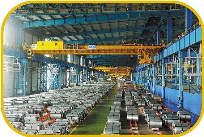 圖為首鋼股份冷軋電工鋼成品庫一角。(李旭龍 攝)