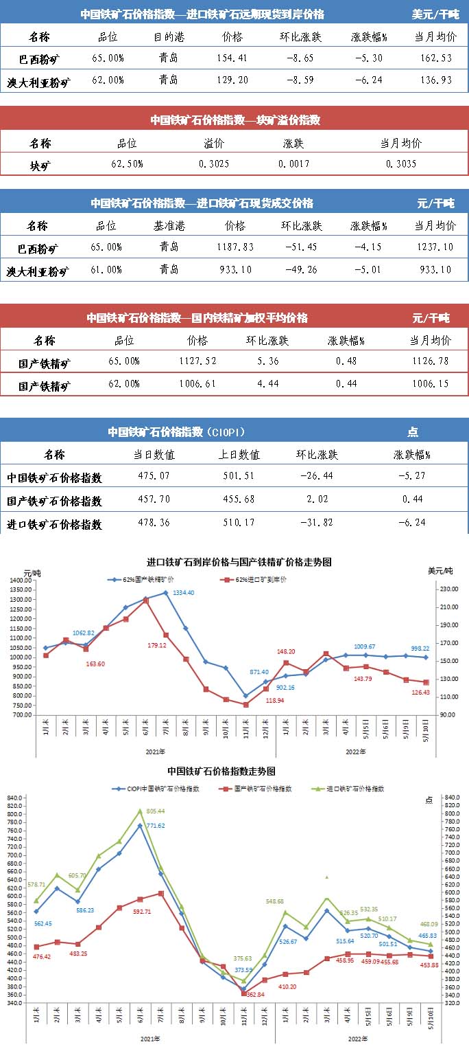 【行業(yè)指數(shù)】5月10日中國鐵礦石價格指數(shù)