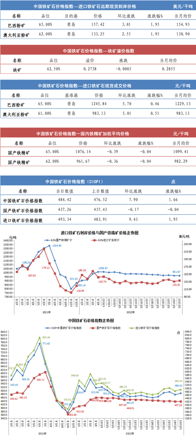 【行業(yè)指數(shù)】5月25日中國(guó)鐵礦石價(jià)格指數(shù)