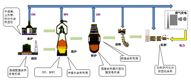 從“十五”開始進入二次能源“利用”階段,鋼鐵行業開始大力推廣應用“三干、三利用”節能減排新技術,“三干”即干熄焦、高爐干法除塵、轉爐干法除塵;“三利用”即可燃氣體、工業用水和工業廢棄物的全面回收和綜合利用。在《冶金流程工程學》的指引下,我國鋼鐵企業開始關注鋼鐵制造流程“能源轉換功能”的開發,這個階段更加注重實現系統能源效率的最大化,逐步推進實現從單體工序節能向系統節能的真正轉變。