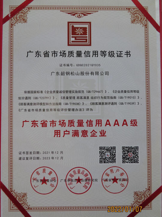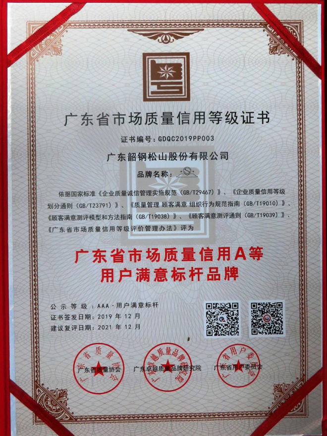 “韶鋼牌”鋼材以其鋼質純凈、化學成分穩定、外形尺寸精確、力學及工藝性能良好、表面光潔等特點獲得了廣大用戶和社會的充分認可,在廣東省及周邊地區、港澳地區和東南亞市場上享有良好聲譽,是廣大用戶心中的首選品牌,具有明顯的品牌效應,多次獲得全國冶金產品實物質量“金杯獎”、廣東省名牌產品、全國用戶滿意產品等稱號,并先后通過了北京中冶檢測認證公司冶金產品認證(中冶MC認證)等專業認證。產品廣泛用于高層建筑、橋梁、高速公路、地鐵、管樁、隧道、核電等項目,為廣州東塔、港珠澳大橋、廣樂高速、汕昆高速、深圳地鐵、陽江核電、太平嶺核電等許多大型工程建設提供產品供應,用戶使用評價很高。