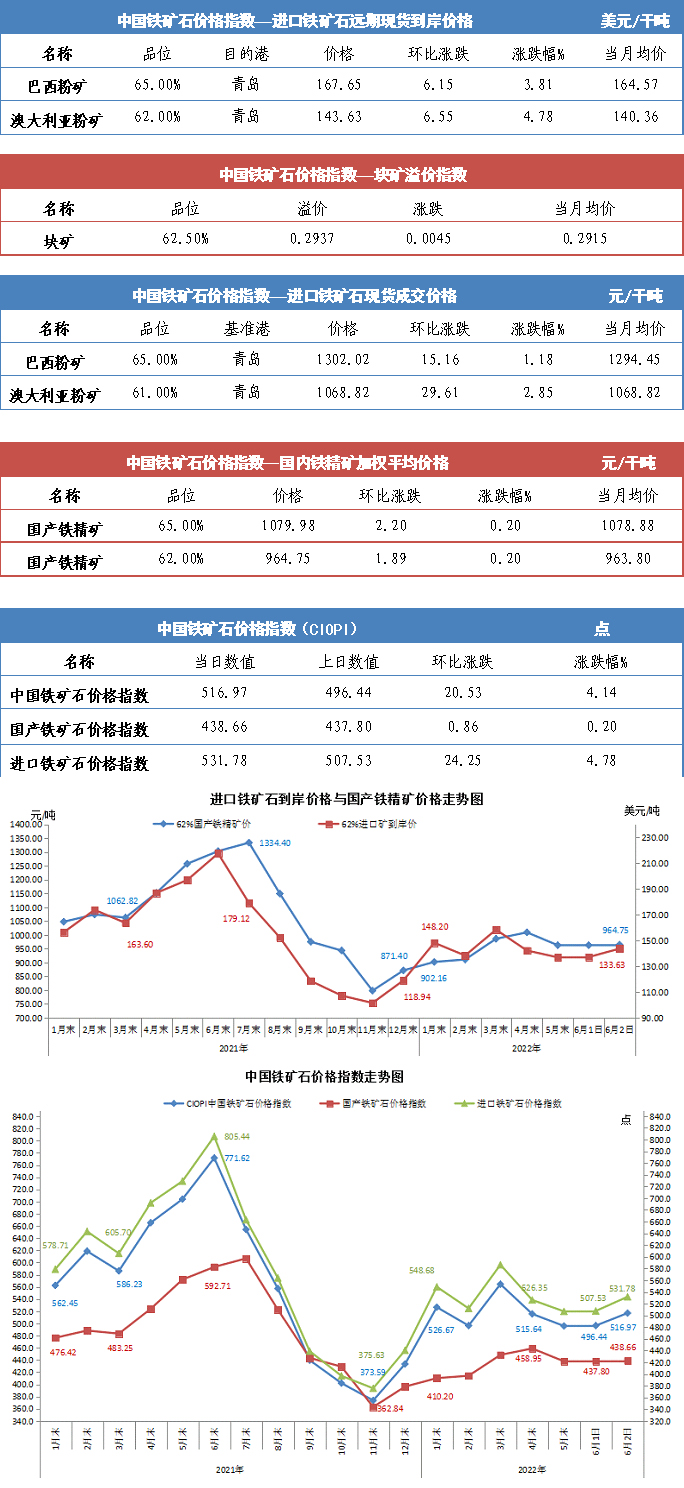 【行業(yè)指數(shù)】6月2日中國(guó)鐵礦石價(jià)格指數(shù)