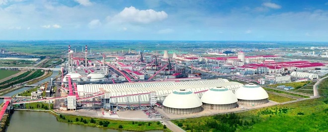 廠區與港口僅相距1.4公里,凌空飛架的管廊實現鋼鐵與海洋的“無縫銜接”。48公里長的皮帶通廊和271公里長的介質管廊,構建起全封閉物流網絡,海運物料直接入倉、生產原料直接運到產線。